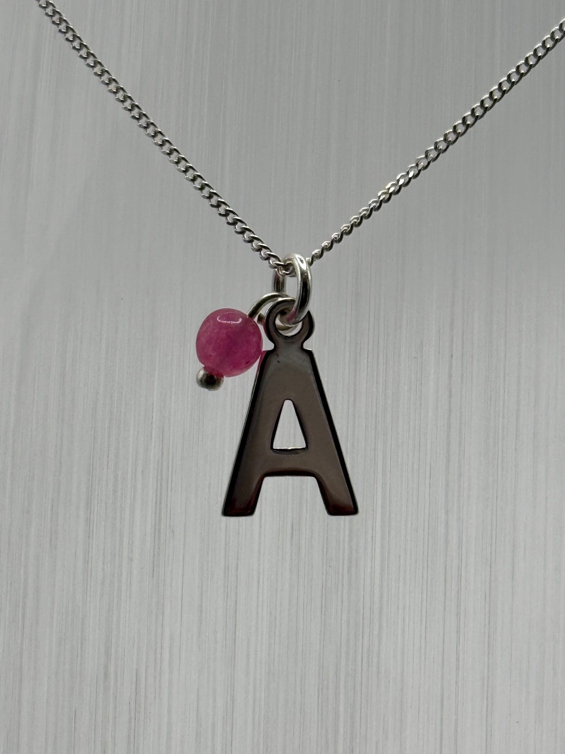 Sterling Silver INITIAL Pendant with Fuchsia Pink Quartz