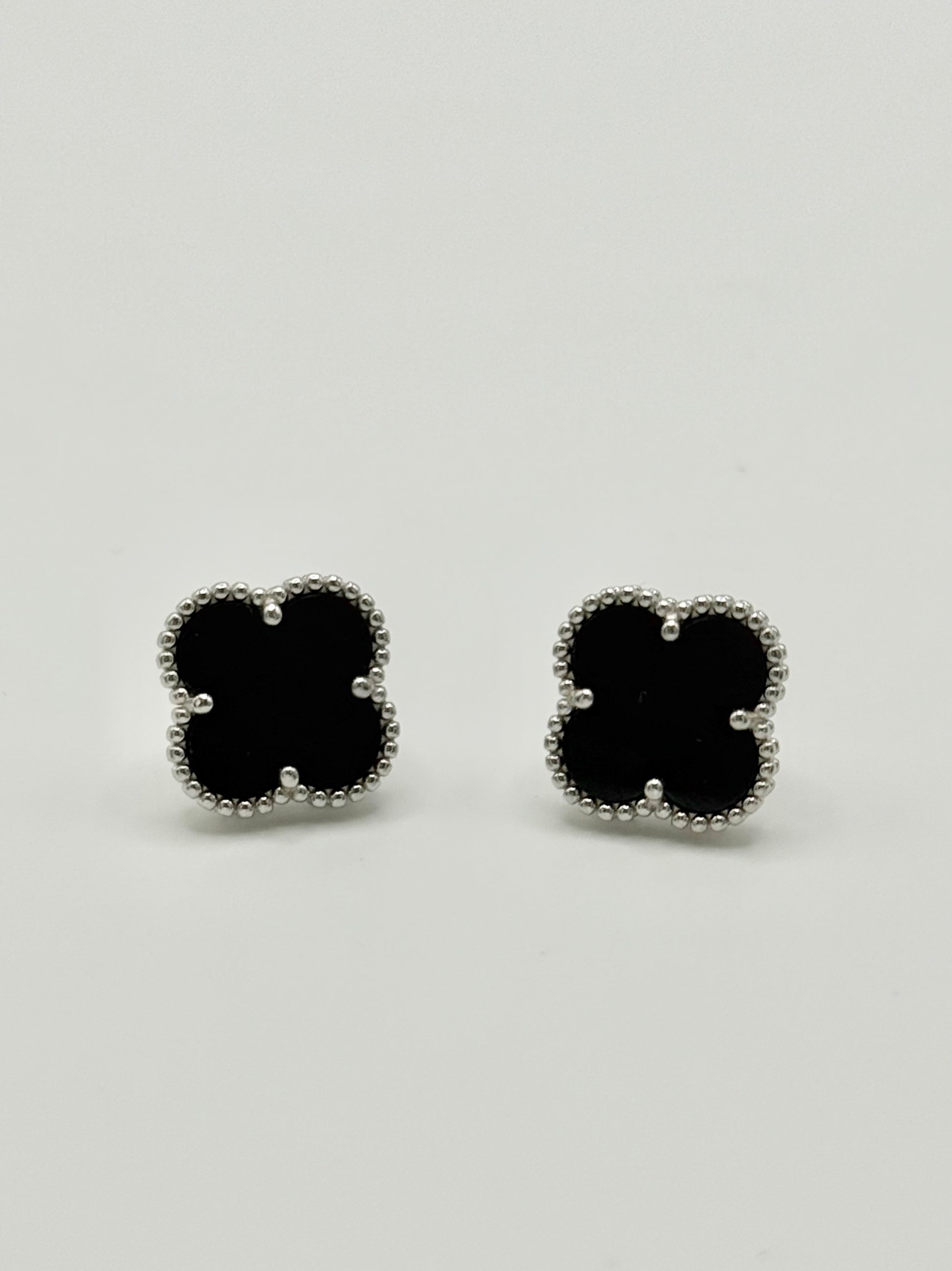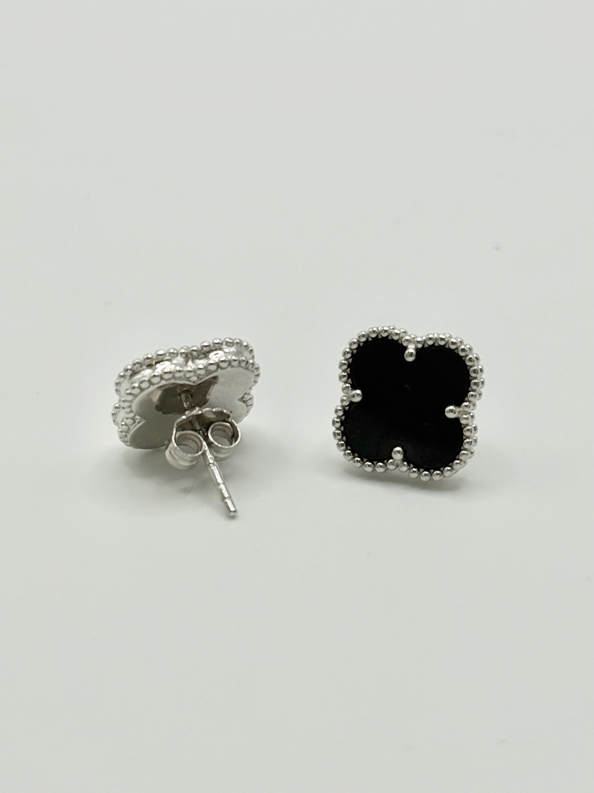 Sterling Silver ONYX Clover Stud Earrings